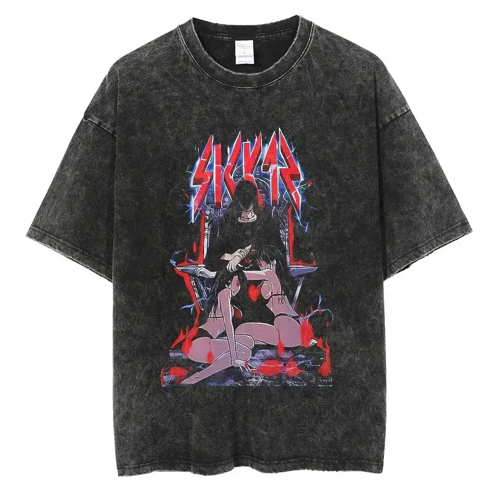 الصفحة الرئيسية اثاث تيشيرت مغسول بطباعة أنمي يابانية